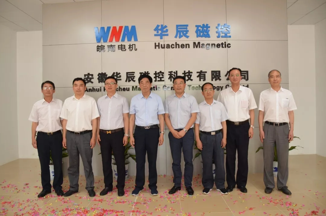 6月16日上午,安徽華辰磁控科技有限公司揭牌儀式在涇縣經(jīng)濟(jì)開發(fā)區(qū)高新企業(yè)創(chuàng)業(yè)園舉行,縣委副書記、縣長施懷中,縣人大常委會主任、縣工業(yè)提速大會戰(zhàn)指揮部政委左銀海出席并為公司開業(yè)揭幕,副縣長馮曉堯為儀式致辭。安徽皖南電機(jī)股份有限公司董事長陳根喜,黨委書記、副董事長管兵,副董事長、總經(jīng)理陳學(xué)鋒等高層領(lǐng)導(dǎo)及上海眾辰電子科技有限公司等相關(guān)單位和銷售公司經(jīng)理們共同參加了揭牌儀式。